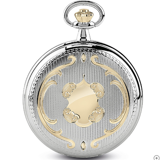 Orologio meccanico con triplo fondello personalizzabile, impreziosito dalla tonalità bicolore color acciaio e oro giallo. Quadrante e fondo con vista movimento.