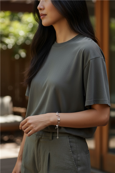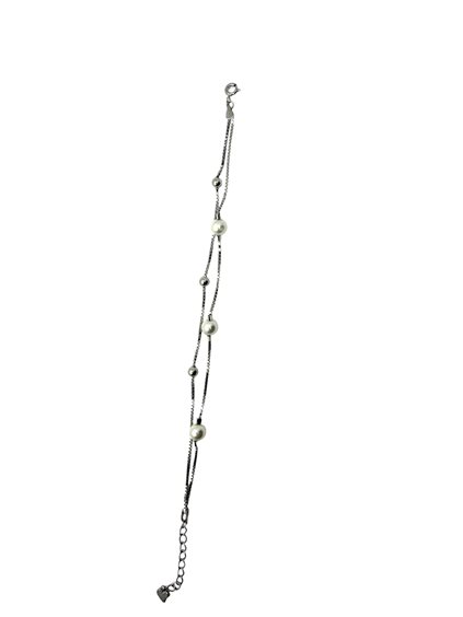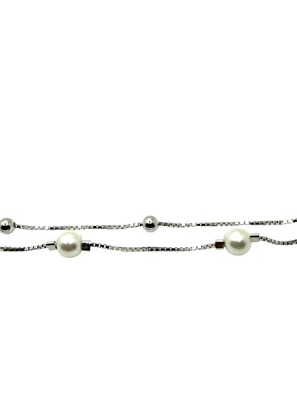 Bracciale donna in argento 925, doppio filo con perle e sfere sparse. Lunghezza cm 17 + 3. Chiusura moschettone