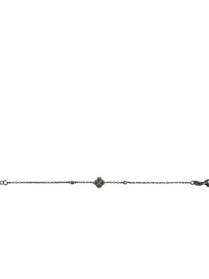 Bracciale donna in argento 925, con zirconi e fiore centrale. Lunghezza cm 16 + 3. Chiusura moschettone