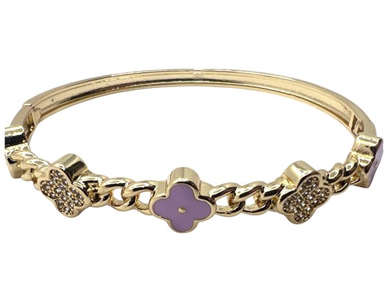 Bracciale donna in ottone ipoallergenico dorato, quadrifogli con dettagli in zirconia cubica bianca e smaltatura rosa