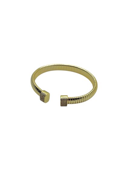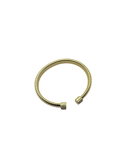 Bracciale rigido donna in ottone ipoallergenico dorato, maglia tubogas con dettagli in zirconia cubica bianca.