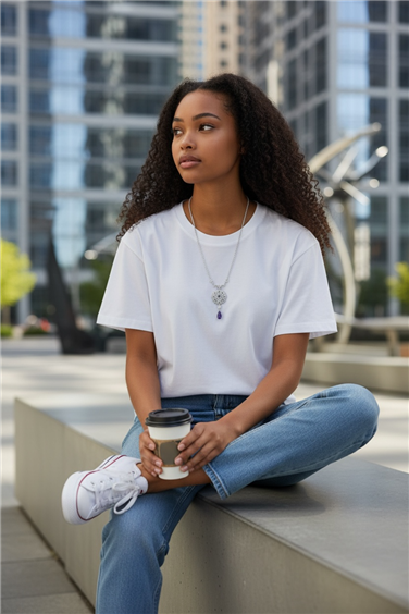 Collana donna in argento 925, pendente fiore in zirconia cubica viola e bianca. Chiusura a scatto. Lunghezza cm 60