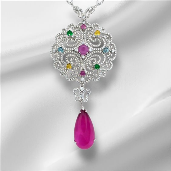 Collana donna in argento 925, fiore in zirconia cubica bianca con dettagli in zirconia cubica multicolor. Chiusura moschettone. Lunghezza cm 58