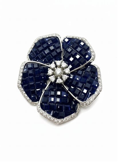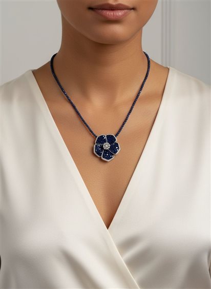 Collana donna in argento 925, catena in cristalli blu e dettaglio in argento 925 dorato, fiore in zircoia cubica blu e bianca. Chiusura moschettone. Lunghezza cm 38 + 5