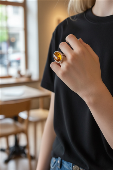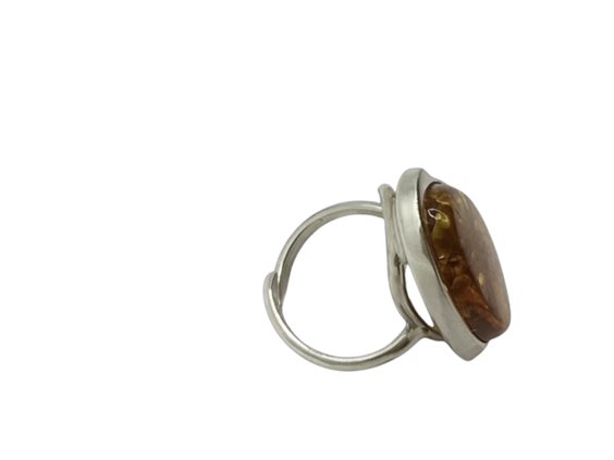 Anello donna in argento 925, dettaglio in ambra ovale di origine polacca.