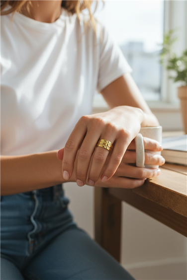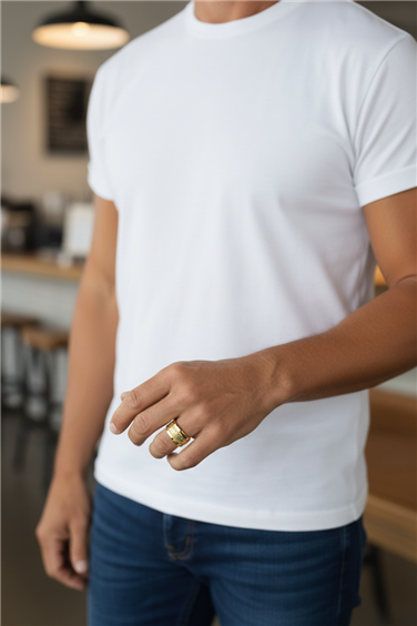 Anello unisex in oro giallo 9k, modello bombato con lavorazione diamantata. Misura regolabile