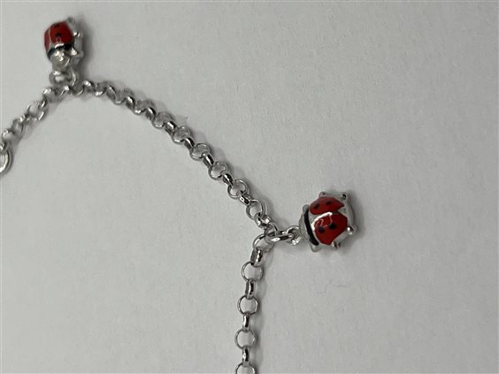 Bracciale in argento 925 bambina e bambino con coccinella rossa smaltata