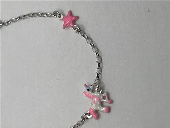Bracciale in argento 925 bambina e bambino con unicorno e stella smaltati