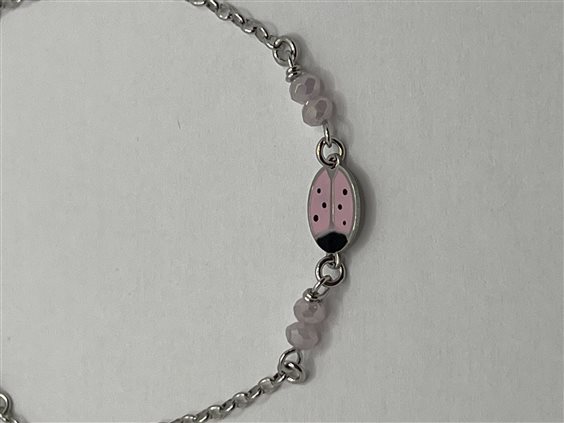 Bracciale in argento 925 bambina e bambino con coccinella smaltata rosa