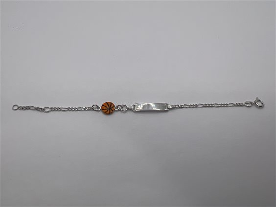 Bracciale in argento 925 bambina e bambino maglia 3+1 con targa per incisione e palla da basket smaltata