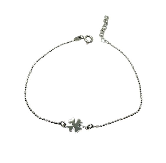 Bracciale donna in argento 925, con quadrifoglio centrale. Lunghezza cm 17,5 + 3. Chiusura moschettone