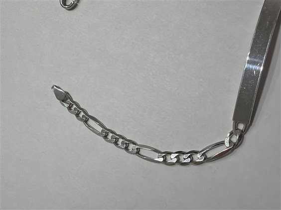 Bracciale uomo in argento 925, maglia 3+1 con targa per incisione. Lunghezza cm 21. Chiusura moschettone