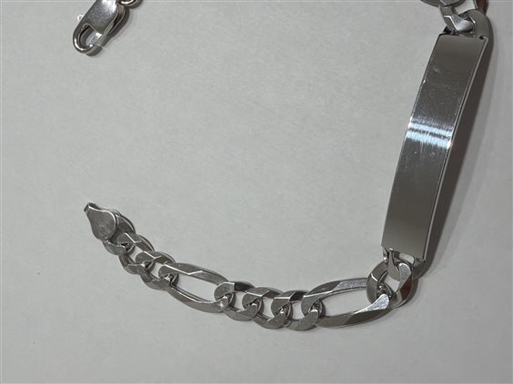 Bracciale uomo in argento 925, maglia 3+1 con targa per incisione. Lunghezza cm 21. Chiusura moschettone