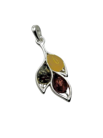 Charm donna in argento 925, con ambra multicolor a goccia di origine polacca. Ideale per collane