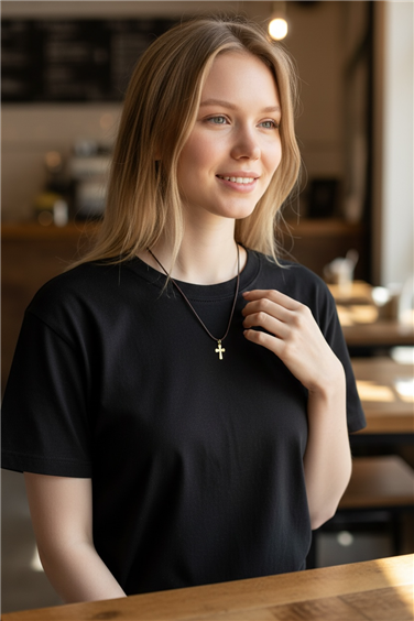 Charm unisex in oro giallo 9k, croce con angoli stondati con lavorazione interna diamantata. Ideale per collane e bracciali