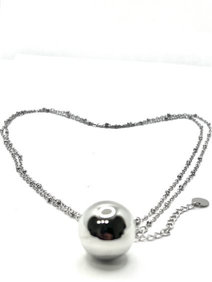 Chiama angeli donna in acciaio, pendente a sfera liscia. Lunghezza cm 90. Chiusura moschettone