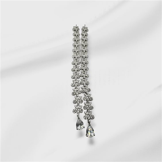 Collana donna in argento 925, con fiori e gocce in zirconia cubica. Lunghezza cm 43 + 3. Chiusura moschettone