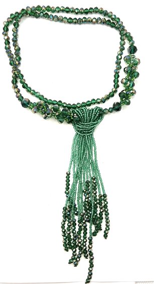 Collana donna con cristalli colorati in vari colori: verde, argento, nero, rosa antico, viola e grigio. Lunghezza cm 72