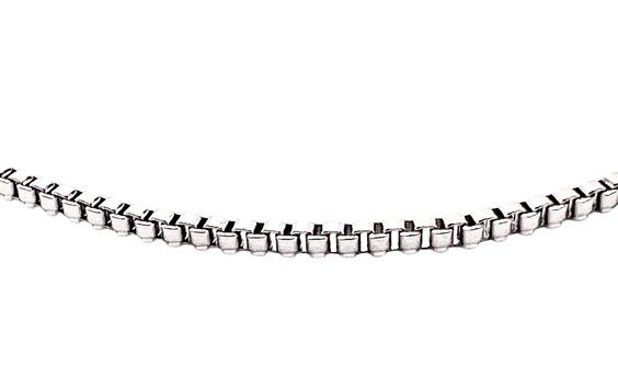 Catenina unisex in accaio, maglia veneziana. Lunghezza cm 60. Chiusura moschettone