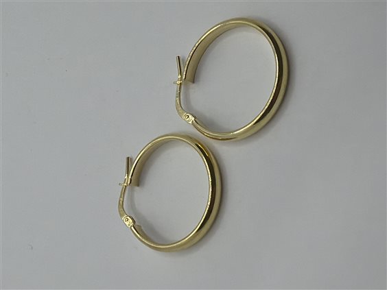 Orecchini a cerchio donna in argento 925 color oro giallo, a canna mezzo tondo liscia. Chiusura a scatto. Diametro interno cm 2