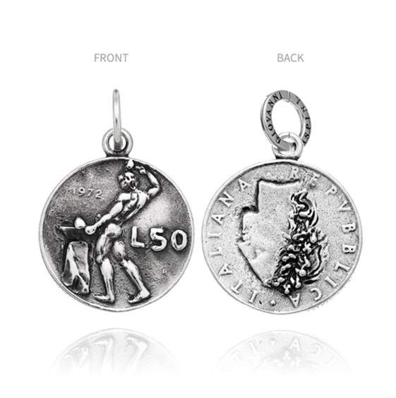 Charm 50 Lire. Con un vulcano, tanti anni fa ci si comprava un cono gelato. Altezza cm.3,20 (esclusa maglina con logo cm.0.90).