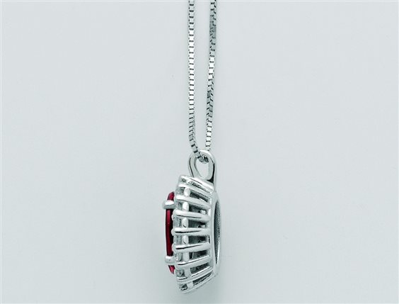 Collier in oro 750/1000 con Nr 18 Diamanti naturali Pt.tot 13,5 e Nr 1 Rubino naturale Oro 750/1000 Taglio Brillante Rotondo Ovale mm 7x5 Ct 0,84 Catenina veneziana bianca Microfusione Griffes