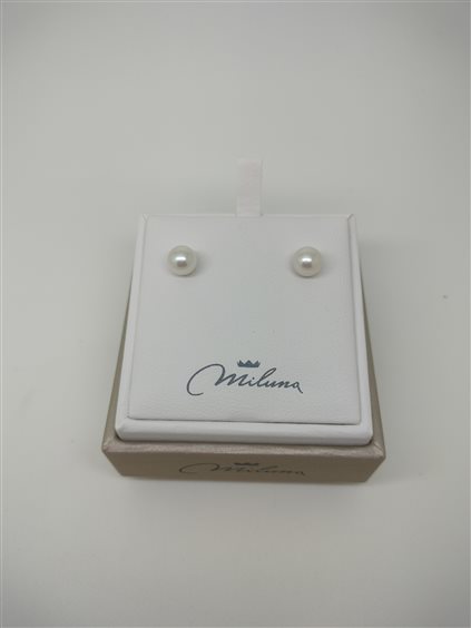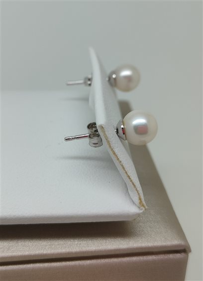 Orecchini in oro bianco 18 carati realizzati con perle d'acqua salata AKOYA 6,5 - 7 sono stati ideati e realizzati da Miluna, chiusura a farfallina.