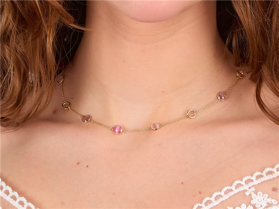 collana in argento dorato collezione venezia con pietre occhi di gatto cm40+5