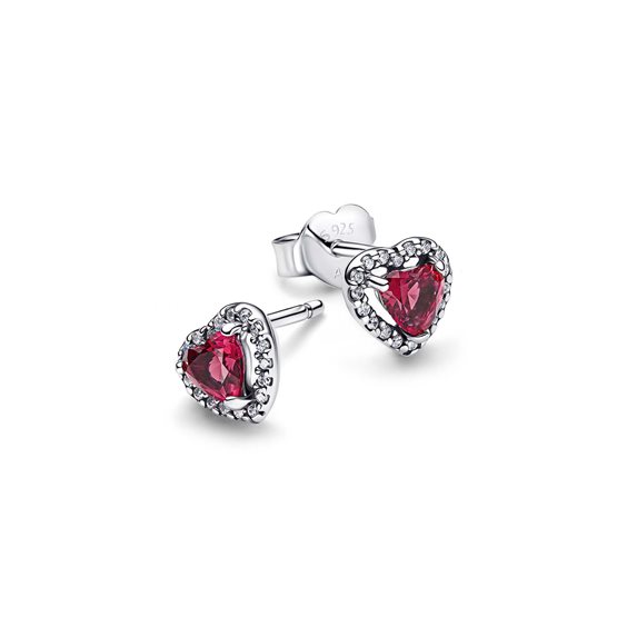 Orecchini a cuore a lobo in Argento Sterling 925 con cristalli creati in laboratorio color ciliegia e zirconia cubica incolore