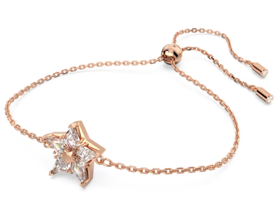 La linea Stella colpisce ancora con questo bracciale costellato di astri. Sfoggia pietre dal taglio kite e un’elegante catena placcata color oro rosa con chiusura a scorrimento. Il suo irresistibile design aggiungerà un tocco di magia al tuo look. Per il massimo impatto, indossalo con la collana e gli orecchini Stella coordinati. Immagini a scopo illustrativo.