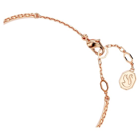 Impreziosisci il tuo polso con la bellezza dell’iconico emblema Swarovski. Questo gioiello placcato color oro rosa presenta una fascia rigida con un elegante motivo con cigno, magistralmente decorato con un pavé di Swarovski ReCreated™ crystals Jet Black. Vi è inoltre abbinata una seconda catenina con uno Swarovski Zirconia trasparente al centro. Intenso e radioso, questo bangle è il mezzo perfetto per infondere di fascino il tuo stile. Immagini a scopo illustrativo.