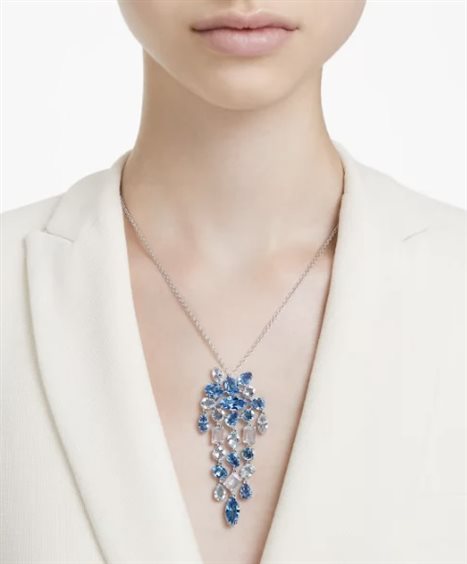 Questo pendente mozzafiato Gema diventerà il vero protagonista del tuo stile. La montatura placcata rodio mette in luce un attraente mix di tagli dalle fresche sfumature blu, disposti in modo organico ma preciso per un effetto straordinario. Un bellissimo regalo per una persona cara o la scelta perfetta per impreziosire il tuo look delle occasioni speciali. Immagini a scopo illustrativo.