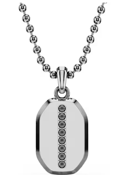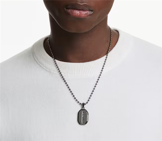 Questo audace pendente è realizzato nell’emblematica forma ottagonale di Dextera e offre un modo alternativo per lo styling di qualsiasi outfit. Sospeso a una catena a sfere con placcatura rutenio, il motivo centrale è interamente decorato con cristalli neri di varie dimensioni e include un’ulteriore striscia di cristalli sul retro. Completa il look elegante abbinando questo pendente a un bangle o a un anello con castone coordinati. Immagini a scopo illustrativo.