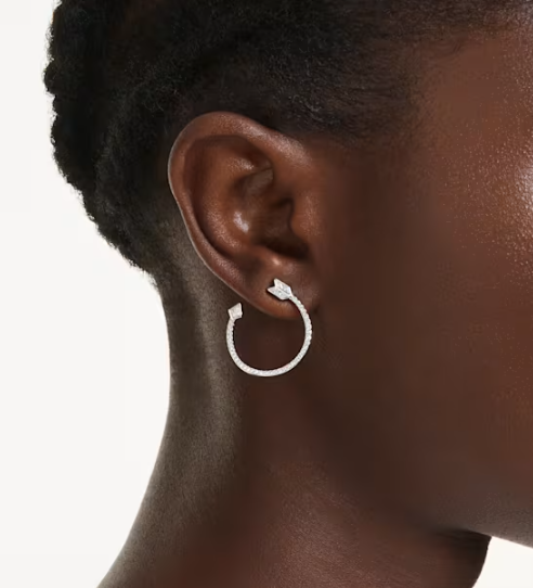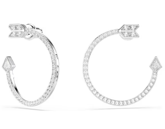 Trasformando il classico stile a cerchio in un paio di frecce di Cupido, gli orecchini Idyllia combinano un’elegante placcatura rodio con una varietà di tagli di cristallo Cry. Indossali per dare un tocco romantico al tuo stile e abbinali agli altri gioielli a forma di freccia della nostra gamma Swarovski. Articolo nr.: 5741522 Collezione: Idyllia Dimensione: 2.4 x 0.2 x 2.4 cm Materiale: Cristalli, Placcatura rodio, Cubic Zirconia Colore: Bianco Peso (singolo oggetto): 1.6 g