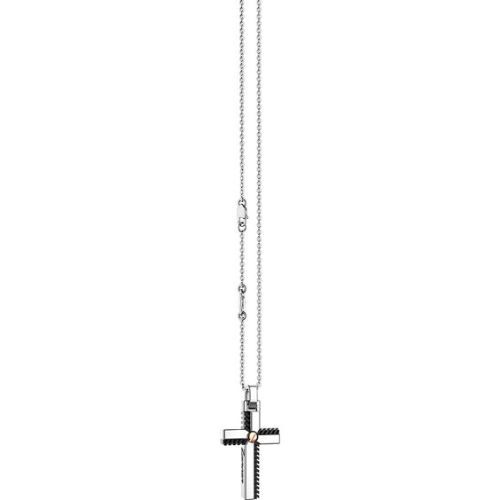 Collana Zancan da uomo in argento Costituito Da 5.10Gr Di Argento 925, 0.01Gr D'Oro 18Kt, Trattamento Al Rutenio Nero. Gioiello Di Misura Standard 50Cm E Soggetto A Forma Di Croce. La Chiusura È A Moschettone.