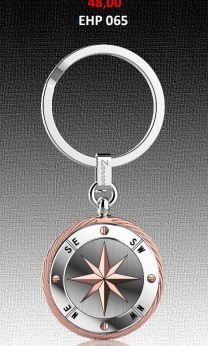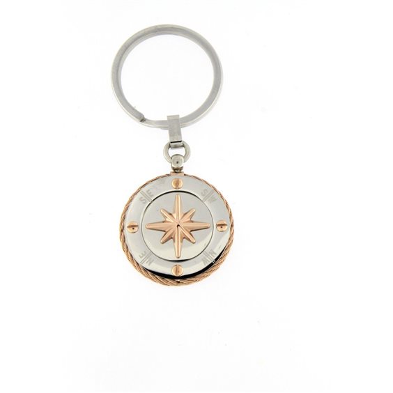 PORTACHIAVI IN ACCIAIO CON MOTIVO A ROSA DEI VENTI, COLOR ORO ROSE'. MIS. CM 6